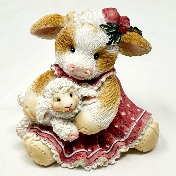 vintage 1994 Mary Meyer Holiday Christmas Cow Figurine Mooey Christmas To Ewe. In good preowned condition, no flaws. Cute white & brown girl cow in red dress, holding a white baby sheep. Super cute! Great to add to collection, or as a replacement piece. Or for anyone who likes cows! Measures approximately 3.5”.