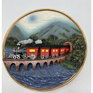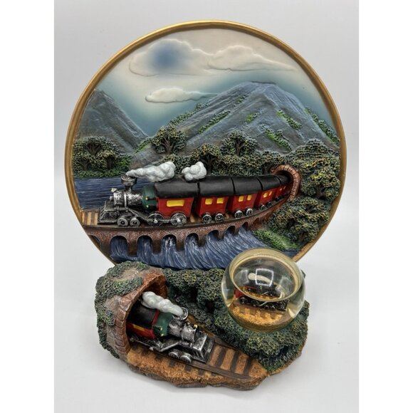 vintage 1999 3D train on Bridge snowglobe Cadona train engine Plate RARE