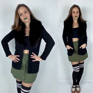 vintage 60s Black Real FOX Fur Collar CASHMERE CARDIGAN Medium real fur draped