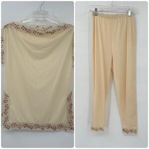 vintage 60s VANITY FAIR 2 piece pajama set sheer embroidered lounge sleep XS S