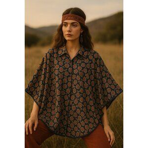 vintage 70s CAPE SHAWL PONCHO WRAP floral paisley boho bohemian hippie OS