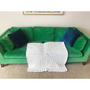 Afghan is medium sized and measures 39.5 inches long by 42 inches wide. Perfect size to drape over the back of a couch or chair.
