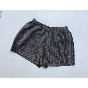 These silver disco shorts are the BEST! They're super sparkly and fun - black with silver lurex sparkles. High elasticated waist and foxy no-pockets design. Estimated size medium.
