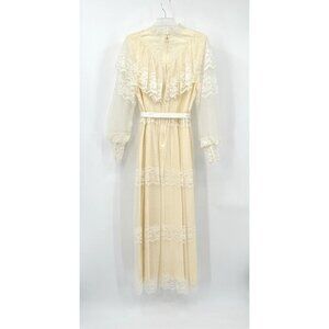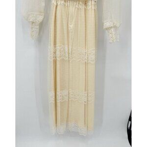 vintage 70s WEDDING DRESS bridal lace victorian boho ivory off white maxi M L