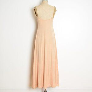 vintage 70s dress nude crochet hippie boho disco goddess maxi sun dress XS