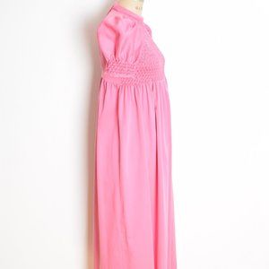 vintage 70s dress pink smocked puff sleeve babydoll kinderwhore lolita maxi S