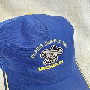 vintage 80s Blue Michelin Plains Supply Snapback Trucker Hat Unisex