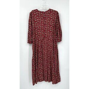 vintage 80s COTTAGECORE HOLIDAY dress midi lace bib floral prairie 3/4 sleeve L