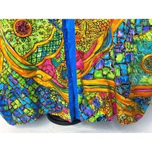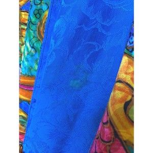 This vintage 80s Diane Freis outfit is perfect for a party or any occasion. The blouse features a bohemian style with bold lotus print, and the pleated silk skirt adds a touch of elegance to the overall look. The size of the outfit is available in the pictures for your reference. The outfit is an original piece from Hong Kong, and its multi-color design makes it stand out from other vintage clothing. A gorgeous set that will make sure a bold statement piece. The blouse has all buttons which work perfectly. Exterior on blouse prints is amazing with no issues detected. The blue silk underneath which is attached to blouse has two stains one located by third button right side. See pic ( not sure if dry cleaners can wash out?) The other spot is on left side on the blue fabric. See pic.. not sure if dry cleaners can wash out? Skirt inside band does have wear around the inside waist. See pic Skirt front has a 3 tiny stains that is faded but i could see under height lights. See pic See pic for all measurements No smells or holes detected Please see all pics If you have any questions please message me. Thanks again Ships fast