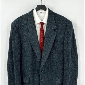 vintage 80s HARRIS TWEED jacket blazer sport coat 100% wool green two button 48L