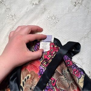 perfect for vintage lingerie collectors, styling as a statement top, burlesque‑inspired looks, coquette dressing, or anyone who loves rich baroque floral prints.