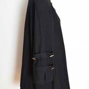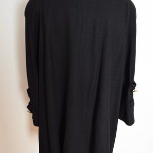 vintage 80s coat jacket black wool trapeze military brass button L XL clothing