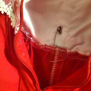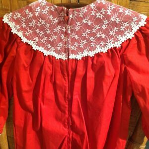 vintage 80s jumper romper one piece red cottagecore lace bow handmade in USA 4