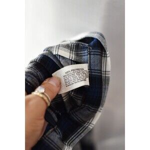 Color: Blue, white, black, gray plaid
