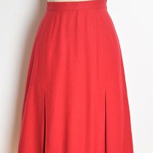 This is a really cute vintage skirt from Pendleton. It's made of medium-weight woven wool (unlined) that's red. This skirt has a pleated hem, no pockets, and it closes on the side with a zipper.