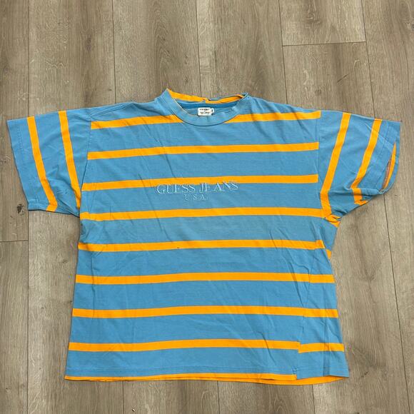 vintage 90s Guess Jeans USA striped Tee T Shirt Size Medium M B14