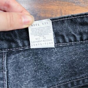 Fabulous true vintage 90s mom jeans by Levi's. Dated August 1997 on inner tag. 512 "Slim Fit Tapered Leg" style in perfectly broken-in black 100% cotton denim. Waist 32-33“, hips 44, rise 13.25“, inseam 30“. Vintage size 16, best for 32” waist (please check measurements), excellent vintage condition.