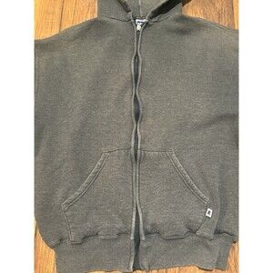 vintage 90s Russell Athletic Zip Up Hoodie Faded Dark Grey Blank Sweatshirt Sz L