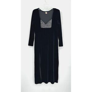 vintage 90s VELVET MIDI DRESS emo goth thigh high slit Y2K retro lbd black M