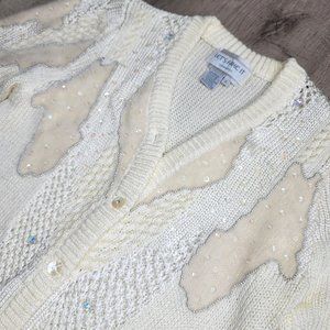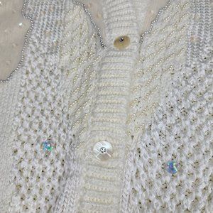 vintage 90s beaded sequin angora lambswool blend chunky knit cardigan sweater S