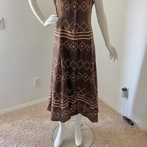 vintage 90s brown linen / 1990s dkny jeans dress / summer button up dress