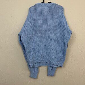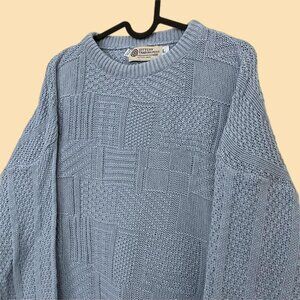 pastel blue, geometric pattern, preppy style, cotton knit, oversized fit, quirky design, 90s vibes, slim fit, elevated basic, vintage feel