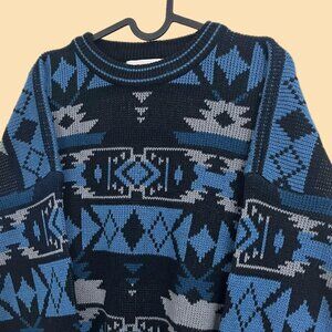 vintage 90s geometric quirky retro indie boxy acrylic knit sweater