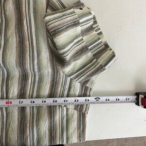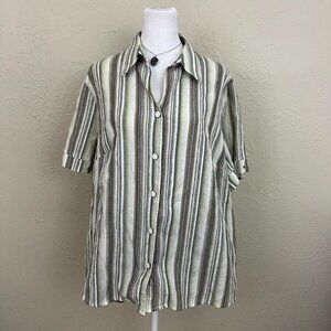 vintage 90s green striped boho granola elevated basic button up
