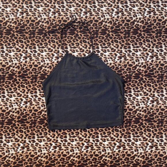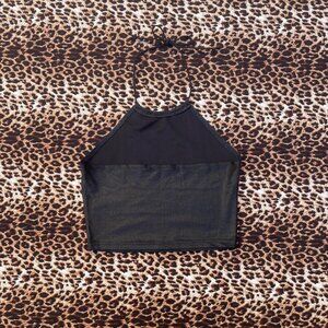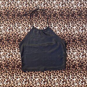 stretchy cropped backless crop top in gunmetal black . has gorgeous shimmer <333