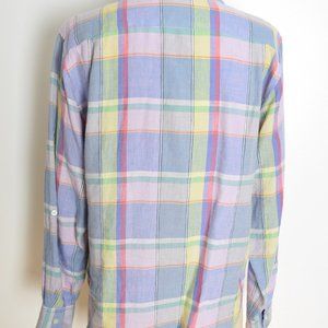 vintage 90s top Ralph Lauren linen pastel plaid button up shirt blouse M