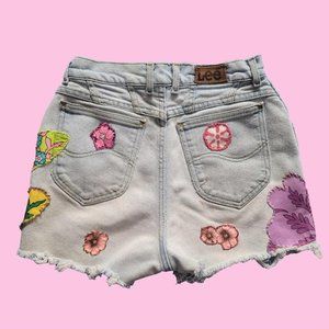 Vintage 90s upcycled Lee cut off shorts 🍓Nice patching, great condition 🍓 one of a kind, measurements below