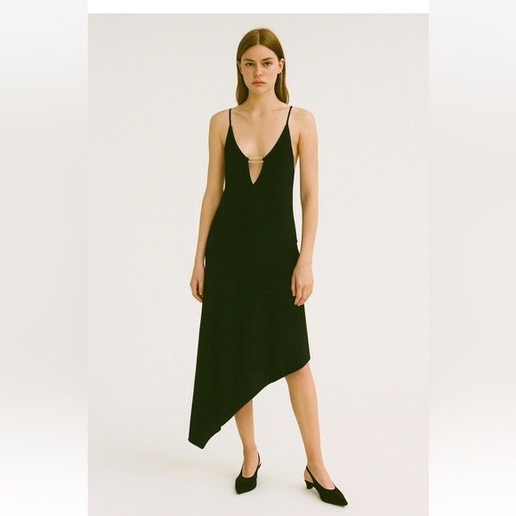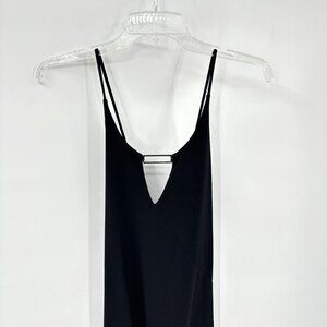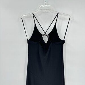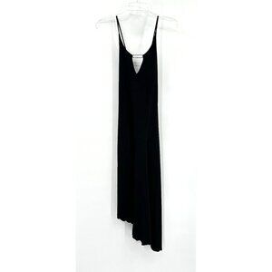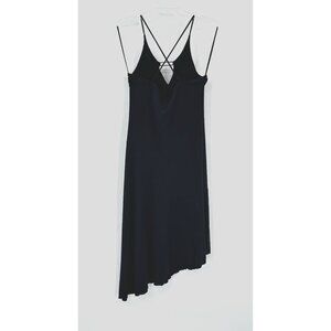 vintage 90s y2k SLINKY BLACK DRESS asymmetrical hem spaghetti strap lbd M