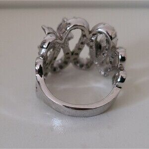 vintage 925 silver cubic zirconia & spinel floral wavy ring size 5.5