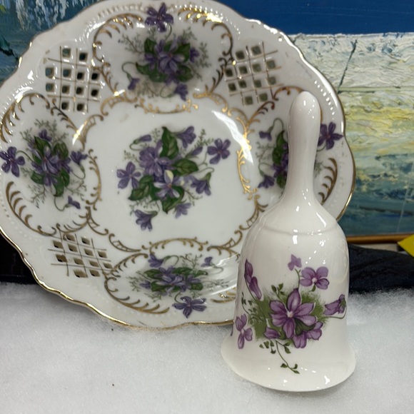 vintage Ardalt Lenwile China compote dish and a matching bell, made in Japan. Perfect condition. No chips or cracks. Beautiful vintage set.