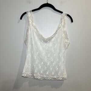 vintage Arianne white embossed bodice cami lace tank top Size Large