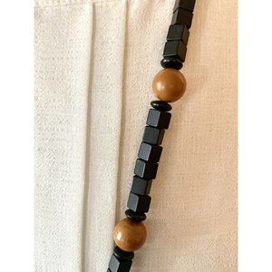 vintage Bohemian Wooden beaded Necklace in Black and Tan/ brown.