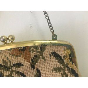vintage Budd Leather Creation chain strap purse carpet tapestry floral pattern
