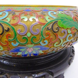 vintage Chinese cloisonne enamel bowl large chrysanthemum floral Jingfa
