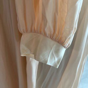 In GOOD CONDITION: as you can see, there is a pull of the nylon between the v at the cleavage . Also a 16" section of unraveled lower hem..but easily remedied with a needle and thread.