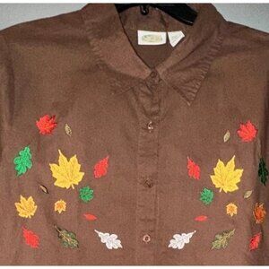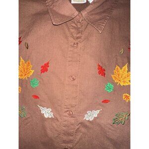 vintage Collections Etc Womens BUTTON DOWN EMBROIDERED AUTUMN LEAVES XL SHIRT