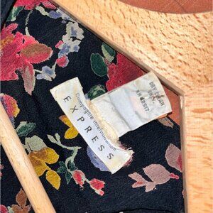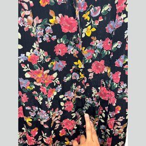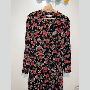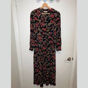 vintage Express Cottagecore Floral V-Neck Button Front Midi Dress Women’s Sz 7/8