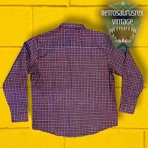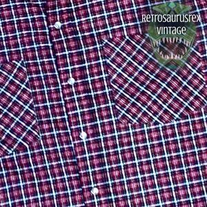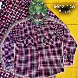 Retrosaurusrex #vintage; vtg; skater; y2k; kurt cobain; engagement; fall; autumn; skater; surfer; cowboy; western; gift; present; for him; business casual; style; comfy; men’s gift #vintageflannel #grungeflannel; Vintage Y2K Burgundy Plaid Western Pearl Snap Flannel, Large
