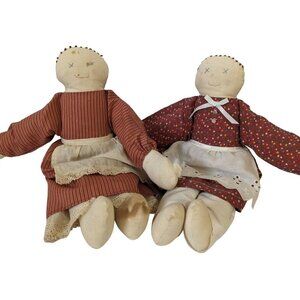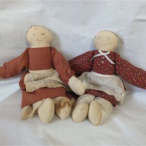 vintage Folk Art Dorothy Rag Doll Handmade Primitive Doll Embroidered lot of 2 1