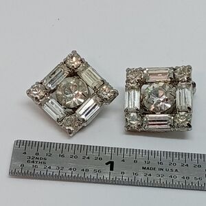 * vintage Garne square with rhinestones clip on earrings