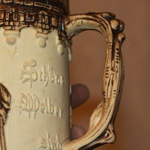 vintage German beer stein Mug porcelain ceramic Scenic Raised Detail