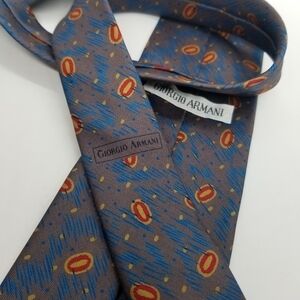 vintage Giorgio Armani abstract tie taupe with blue squiggles and red ovals