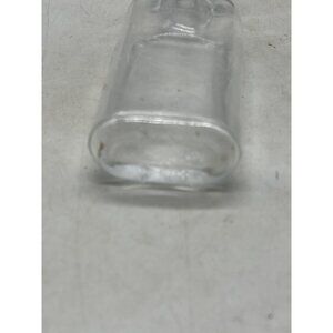 This vintage clear glass apothecary bottle features a rectangular shape, perfect for adding a touch of nostalgia to your decor or collection. Its compact size makes it ideal for display.