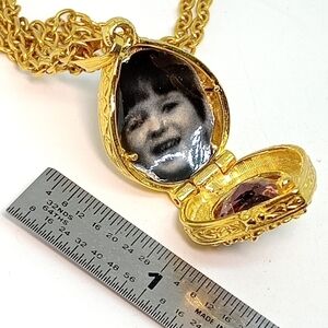 * vintage Goldette purple glass teardrop locket compartment necklace
