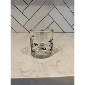vintage Halloween glass mug featuring a witch, bats, and a full moon 90s 80s