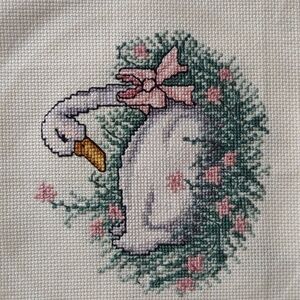 vintage Hand Stitched Cross Stitch Goose & Wreath Completed